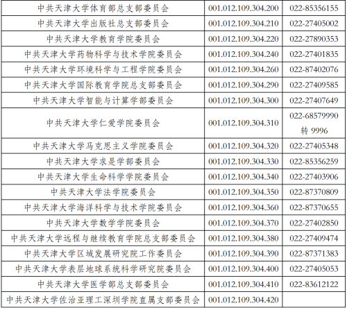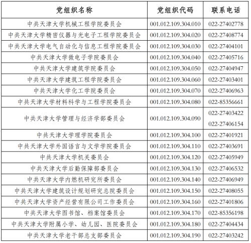 党员组织关系在天津的中共党员(预备党员),待正式报到后, 由组织关系所在有组织关系转接权限的基层党组织,通过“天津市党 内统计信息系统”在网上进行组织关系转接,无需纸质版介绍信。目标党组织为拟入学、入职的院级党组织(拟到武清前沿院、滨海研究院、青岛研究院报到的非全日制研究生,党员组织关系转入区域发展研究院党工委),具体名称及党组织代码如下: