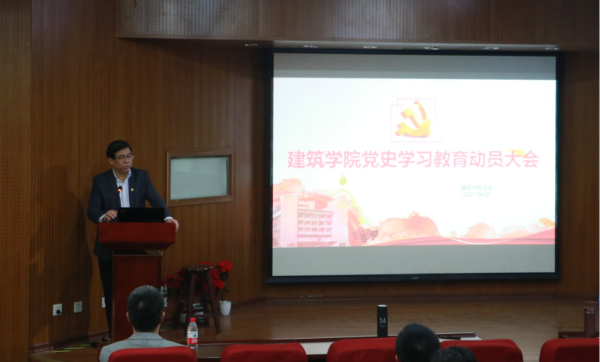 4月2日,建筑学院党委召开党史学习教育动员大会,认真学习贯彻习近平总书记在党史学习教育动员大会上的重要讲话精神,传达天津大学党史学习教育动员大会精神,部署学院党史学习教育工作。学院党委书记宋昆出席大会并作动员讲话。学院领导、党委委员、党委中心组成员、各系所主任、教工党支部书记、全体教工党员及学生党员代表参加了大会。大会由学院党委副书记王鑫主持。