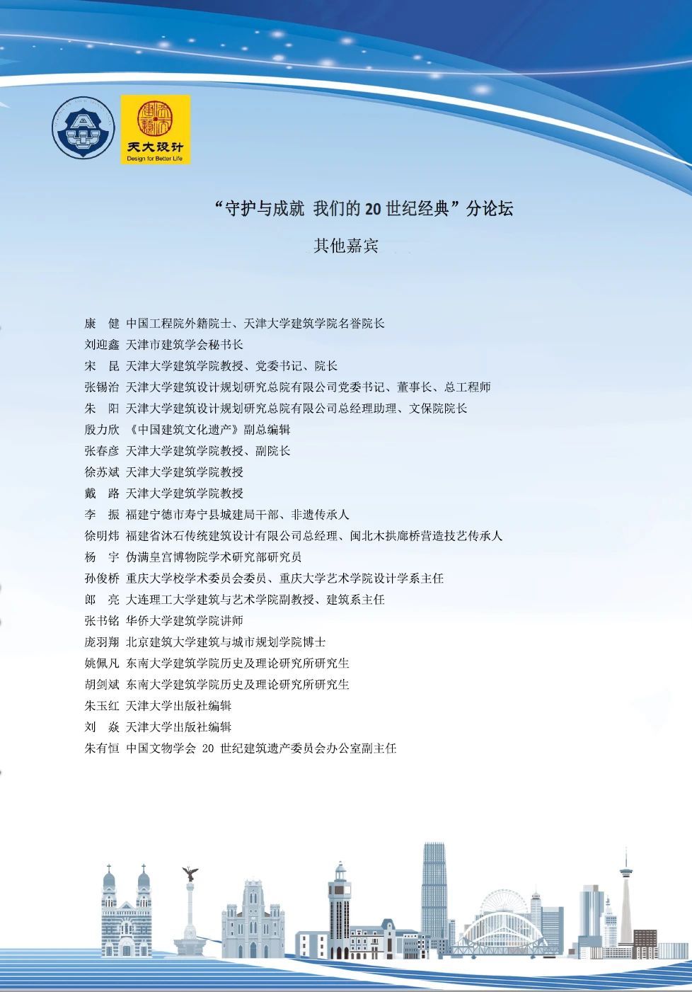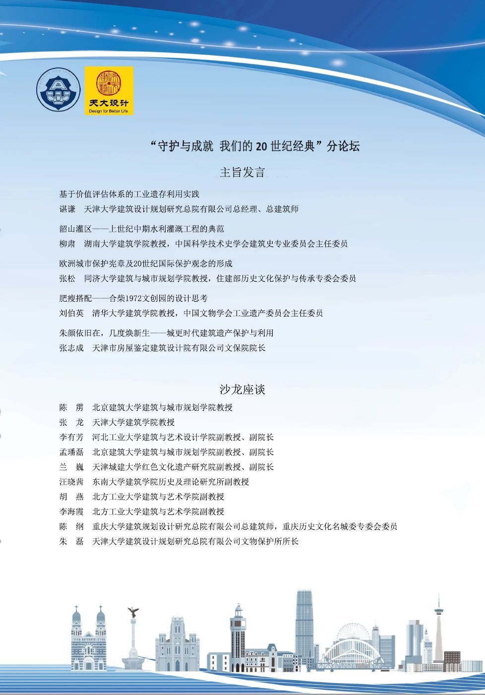 为了更好地分享经验、交流思想、共同探讨20世纪建筑遗产的活化利用与城市更新,天津大学建筑学院和天津大学建筑设计规划研究总院有限公司承办本次研讨会“分论坛二:守护与成就 我们的20世纪经典”。邀请国内建筑遗产保护专家与代表,围绕中国20世纪建筑遗产的相关问题进行探讨。