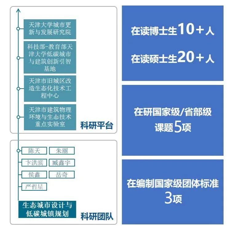 天津大学建筑学院生态城市设计与低碳城镇规划研究团队包括城乡规划、建筑、能源等多学科领域的科研骨干人才。研究团队由陈天教授、朱丽教授牵头,在城市设计、生态城市设计、城市低碳规划、乡村规划及其他城市规划理论与实践领域取得了突出成果,并通过科研成果与实践项目的创新转化,促进高素质、高水平的人才培养以及产学研融合发展。团队依托“天津市旧城区改造生态化技术工程中心”、“天津市建筑物理环境与生态技术重点实验室”、“天津大学城市更新与发展研究院(CTTI年度来源智库)”等平台,以天津大学建筑设计规划研究总院有限公司和国家海洋技术中心为实践科研转化基地,顺应生态文明和存量更新时代的城市发展趋势,积极探索学科交叉导向下的人才培养机制,开展智慧化的教学研产一体化创新技术研发,在绿色低碳、可持续能源、韧性城市、存量更新、智能设计等领域实现生态城市设计和低碳城镇规划的发展目标,为探索我国城市的可持续发展范式做出积极贡献。