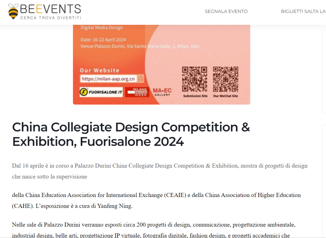 米兰国际家具展(Salone del Mobile.Milano),公认的世界三大家具展之一,被誉为世界家具设计及展示的“奥斯卡”与“奥林匹克”盛会。米兰设计周-中国高校设计学科师生优秀作品展(Milan Design Week China Collegiate Design Competition & Exhibition)由中国教育国际交流协会、中国高等教育学会于2016年发起主办,赛事旨在真实反映新时代背景下我国设计学科教学水平的现状和教学成果,为全国艺术学科师生搭建展示专业才华和创作水平的国际化交流学习平台。作为《高校艺术学科师生海外学习计划》平台化转型的服务项目之一,迄今已成功举办7届,总计收到全国1000多所高校师生报名作品22万余件,其中在米兰展出优秀作品1200余件,有效支持国内外院校共享和对比教学成果,积极推动我国高等艺术教育的交流与进步。