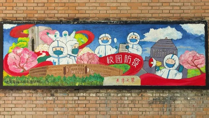 在本次创作过程中,同学们还加入了“8917天大之星”“海棠花”等极富天大特色的元素,更为墙绘增添了浓厚的校园历史文化气息。