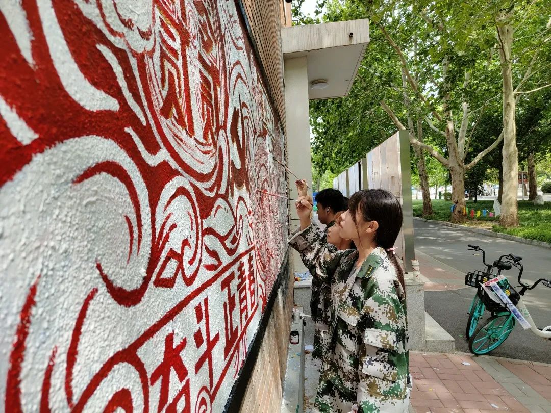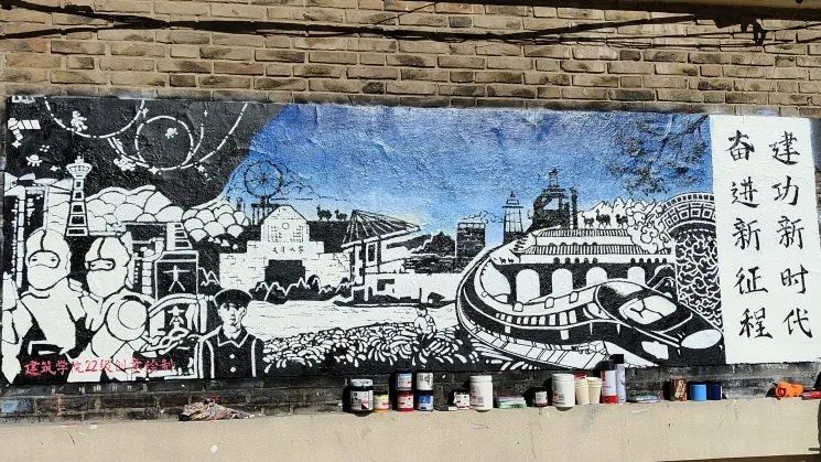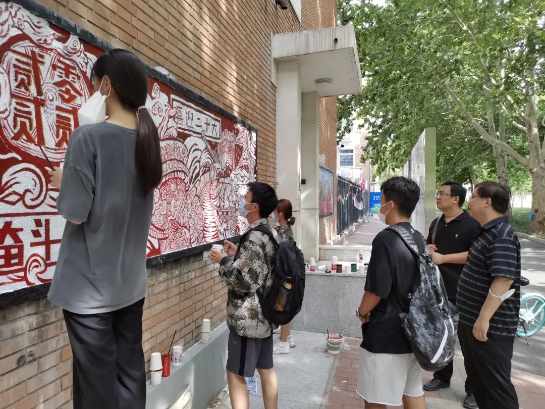 建筑学院党委书记、常务副院长宋昆、党委副书记王鑫、环境设计专业教师赵伟、郝卫国深入一线,在墙绘的画稿设计、具体施工都对学生进行了专业指导,在墙绘实践中提升学生的专业素养,同时还对作品的政治方向与思想引领进行严格把关,确保墙绘作品在具有正确价值导向的同时提高作品的艺术水准。
